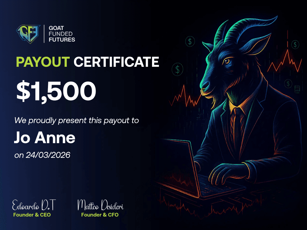 Goat Funded Futures, a trade name of of WITI LIMITED (77146639) a company registered in Hong Kong publish and distribute content that should be regarded as general information only. None of the information provided by the Company or contained herein is intended as investment advice, an offer or solicitation of an offer to buy or sell securities, or a recommendation, endorsement, or sponsorship of any security, company, or fund. The information contained on the Company’s websites is provided for informational purposes only and is not intended to be relied upon for making investment decisions. Any use of the information contained on the Company’s websites is at your own risk, and the Company assumes no responsibility or liability for any use or misuse of such information. Nothing contained herein constitutes a solicitation or an offer to buy or sell futures, options, or forex. Please note that past performance is not necessarily indicative of future results, and any investment involves risks, including the possibility of total loss of the invested amount. You should always seek professional advice before making any investment decisions. The Company is not a financial broker, financial advisor, or financial representative, and does not accept client deposits.